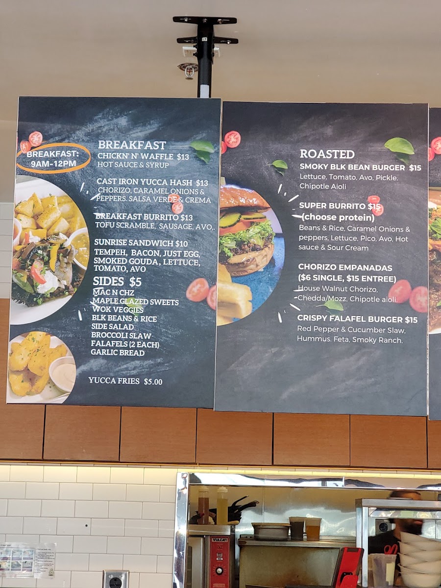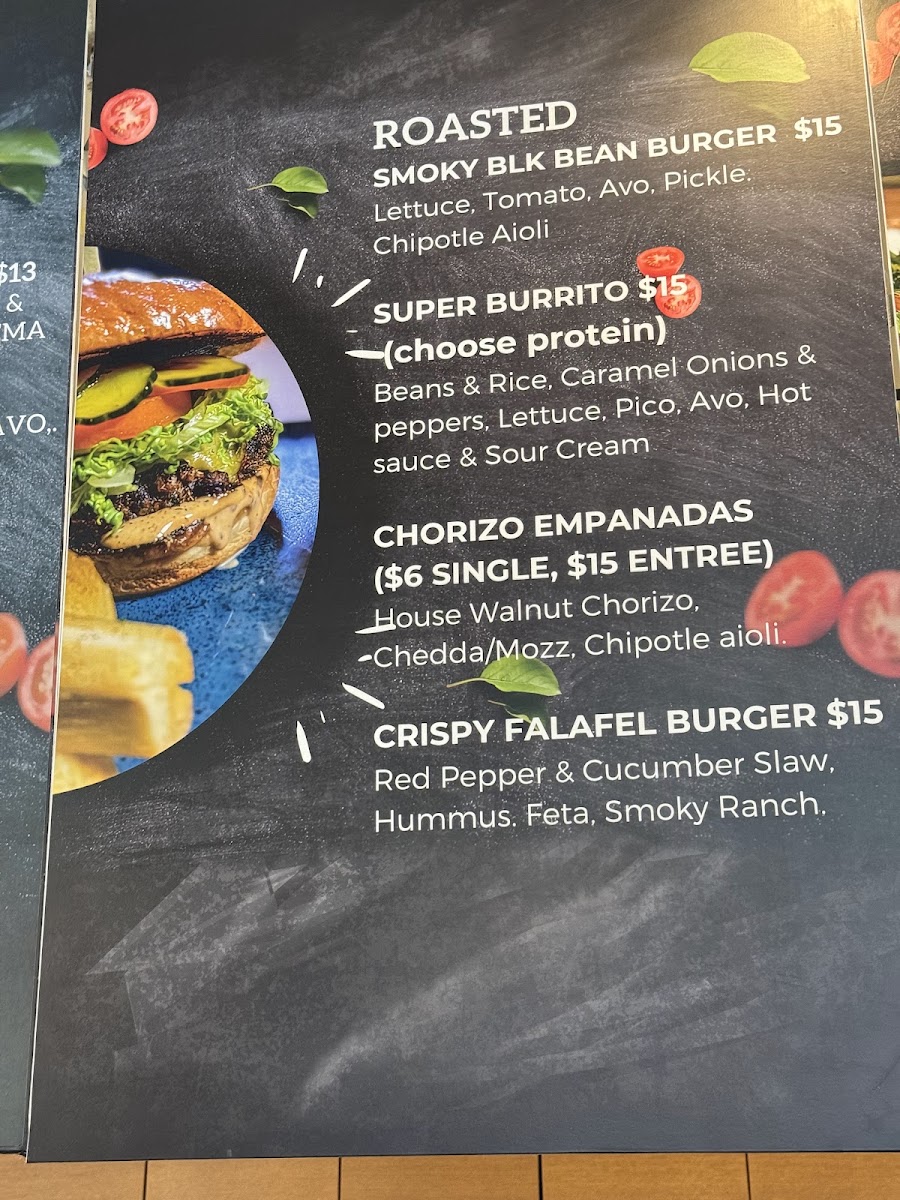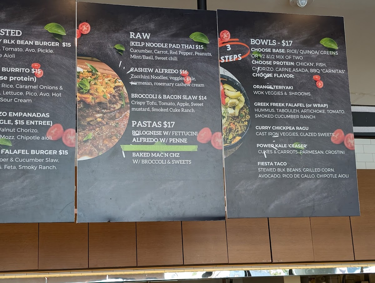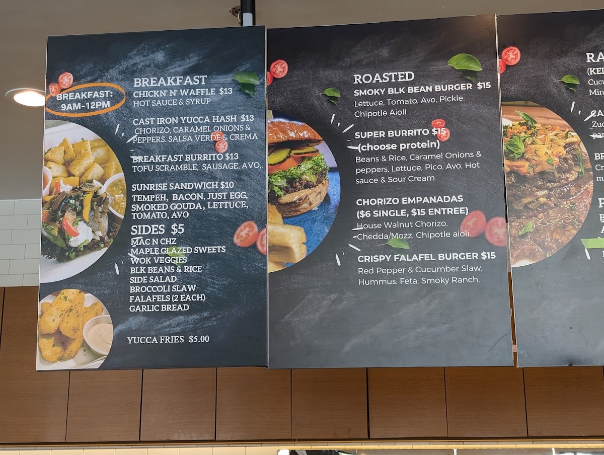As a reviewer wrapping up my experience with the menu at Roasted And Raw located at 607 14th St, Oakland, CA 94612, I’d say the menu feels like a thoughtful celebration of balance between comfort food and clean, creative eating. The customizable Bowls immediately stand out, especially options like Greek Freek Falafel, Orange Teriyaki Chicken, Curry Chickpea Ragout, Power Kale “Ceaser”, and Fiesta Taco, which give diners plenty of flexibility to mix bases, proteins, and flavors without feeling repetitive. Moving into heartier territory, the Burgers and Burritos-served with a satisfying side of yucca fries-offer bold, familiar flavors through choices such as the Smoky Black Bean Burger, Vallejo Burrito (Add Protein), and Crispy Falafel Burger, all of which feel indulgent yet still aligned with the restaurant’s health-conscious philosophy. The House Pastas section further reinforces this identity, blending raw and hot dishes seamlessly: from the refreshing raw options like Kelp Noodle Pad Thai (RAW DISH), Broccoli & Bacon Slaw (RAW DISH), and Raw Cashew Alfredo (RAW DISH) to comforting classics with a twist such as Zucchini Lasagna and Southern Style Mac and Cheez Entree, all served with crusty garlic bread. Finally, the Sides-Mac n Cheez, Yucca Fries, Maple Glazed Sweet Potatoes, Local Green Salad, and Wok Stir Fry Veggies-round out the menu perfectly, making it easy to customize any meal. Overall, the menu feels cohesive, inclusive, and well-curated, leaving a lasting impression of a restaurant that knows how to satisfy both mindful eaters and comfort-food lovers alike.