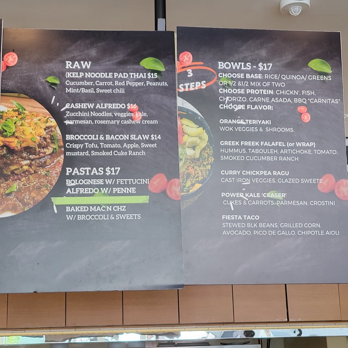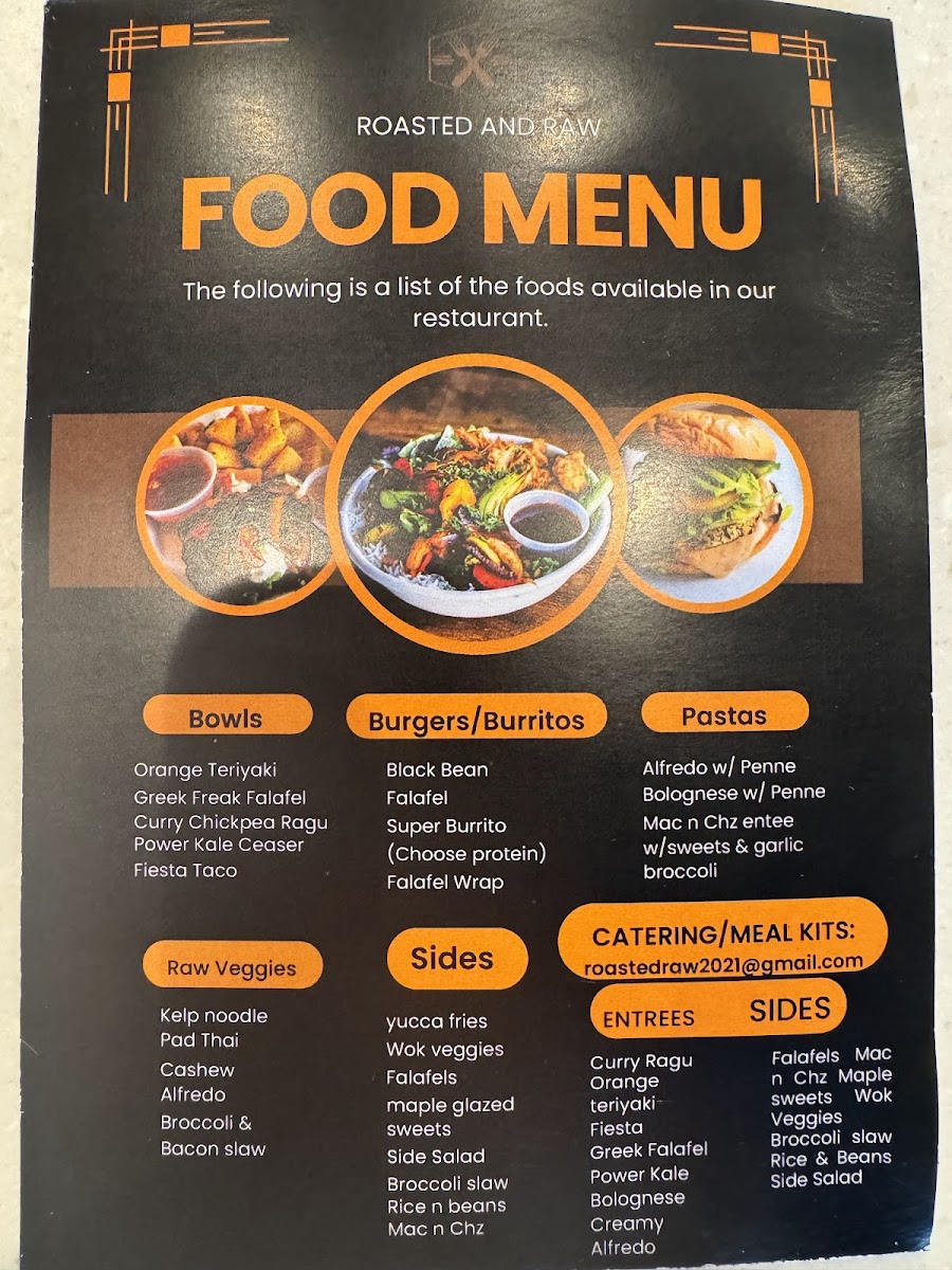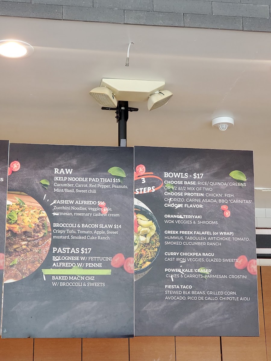 As a reviewer wrapping up my experience with the menu at Roasted And Raw located at 607 14th St, Oakland, CA 94612, I’d say the menu feels like a thoughtful celebration of balance between comfort food and clean, creative eating. The customizable Bowls immediately stand out, especially options like Greek Freek Falafel, Orange Teriyaki Chicken, Curry Chickpea Ragout, Power Kale “Ceaser”, and Fiesta Taco, which give diners plenty of flexibility to mix bases, proteins, and flavors without feeling repetitive. Moving into heartier territory, the Burgers and Burritos-served with a satisfying side of yucca fries-offer bold, familiar flavors through choices such as the Smoky Black Bean Burger, Vallejo Burrito (Add Protein), and Crispy Falafel Burger, all of which feel indulgent yet still aligned with the restaurant’s health-conscious philosophy. The House Pastas section further reinforces this identity, blending raw and hot dishes seamlessly: from the refreshing raw options like Kelp Noodle Pad Thai (RAW DISH), Broccoli & Bacon Slaw (RAW DISH), and Raw Cashew Alfredo (RAW DISH) to comforting classics with a twist such as Zucchini Lasagna and Southern Style Mac and Cheez Entree, all served with crusty garlic bread. Finally, the Sides-Mac n Cheez, Yucca Fries, Maple Glazed Sweet Potatoes, Local Green Salad, and Wok Stir Fry Veggies-round out the menu perfectly, making it easy to customize any meal. Overall, the menu feels cohesive, inclusive, and well-curated, leaving a lasting impression of a restaurant that knows how to satisfy both mindful eaters and comfort-food lovers alike.